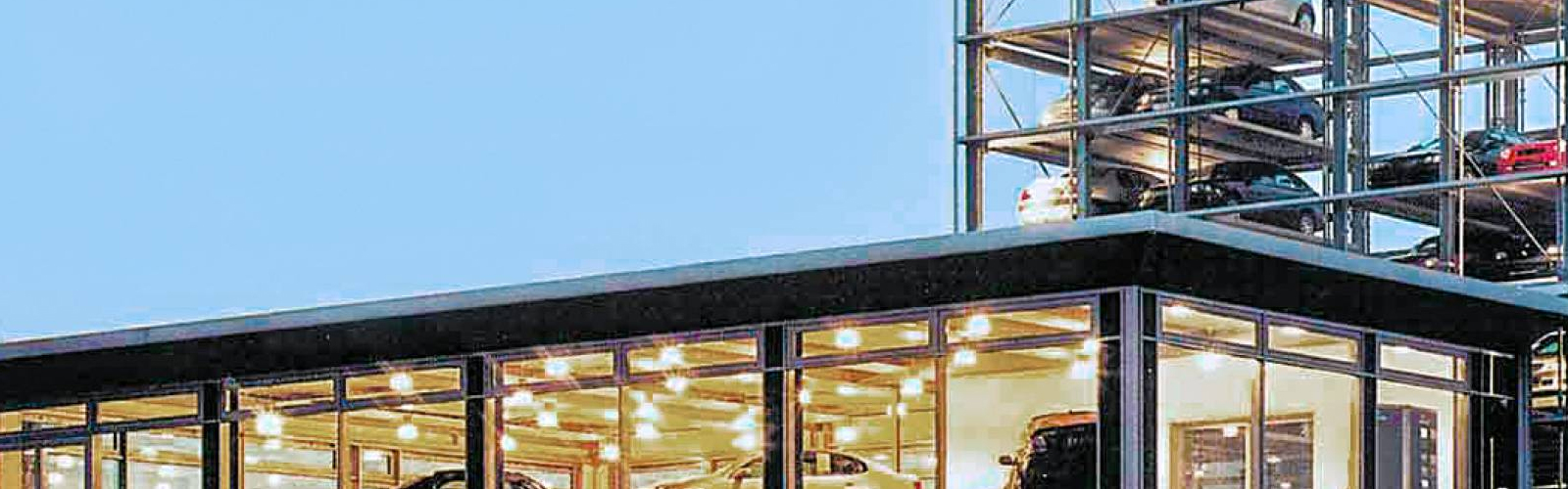 minimal footprints. Vehicles are stored vertically in a tower structure without driver access inside.
